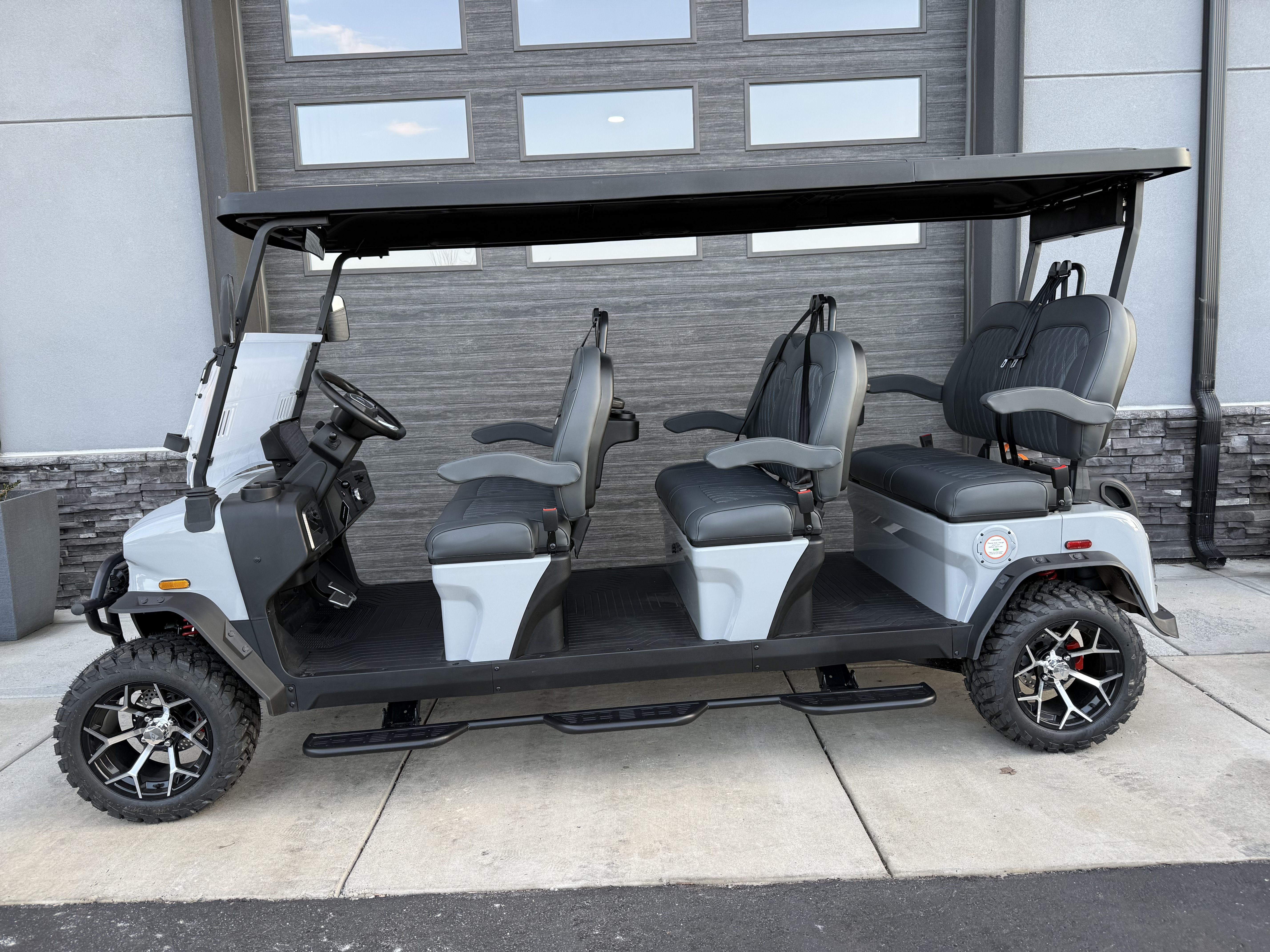 The Denago Rover XLL is a premium, lifted 6-passenger golf cart built for smooth cruising, advanced tech, and maximum versatility — powered by a maintenance-free lithium battery with an industry-leading 8-year warranty.
